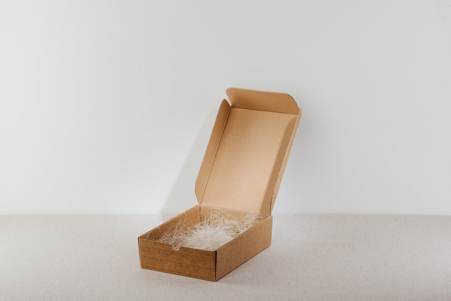 Faltschachtel aus Wellpappe zum Verpacken verschiedener Geschenksets (Salzstangerl, Kürbiskernöl, Likör usw.).