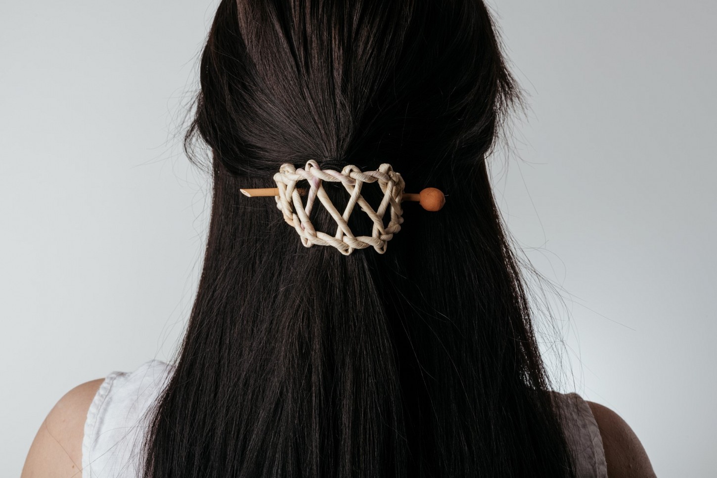 Haarnadel aus Maishülsen, die sich fast unsichtbar in das Haar stecken lässt, ohne es zu strapazieren. Haarnadel aus Maishülsen, geflochten aus traditionell vorbehandelten Maishülsen nach den Methoden unserer Vorfahren. Verstellbar.