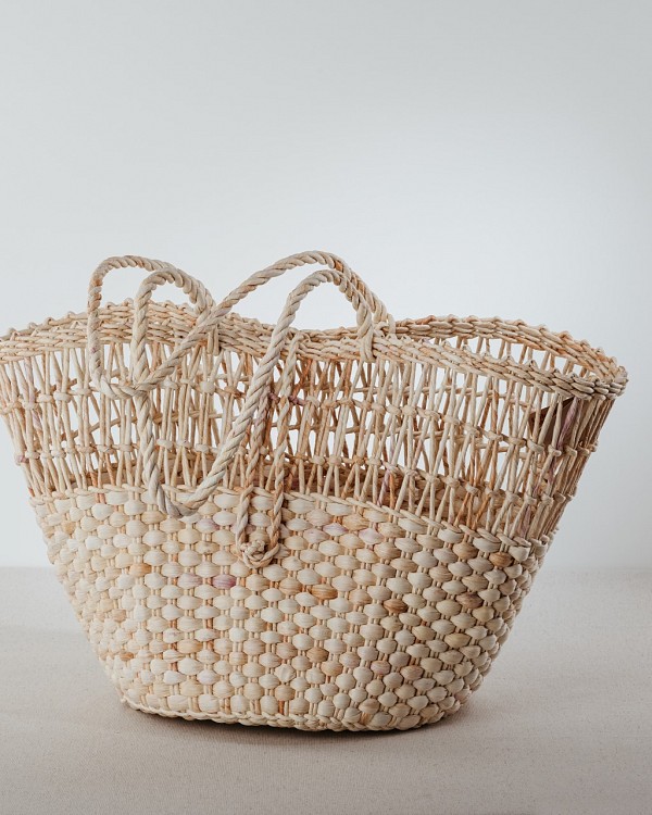 Shopper aus Maishülsen – schick, praktisch, nachhaltig und vor allem einzigartig. Shopper, geflochten aus traditionell vorbehandelten Maishülsen nach den Methoden unserer Vorfahren.
