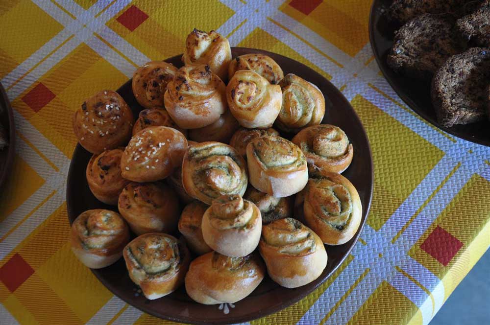 Utrinki iz delavnic in novo nastalega produkta peke Pomelajevi zavitki (Pomelajeva gnjezda)