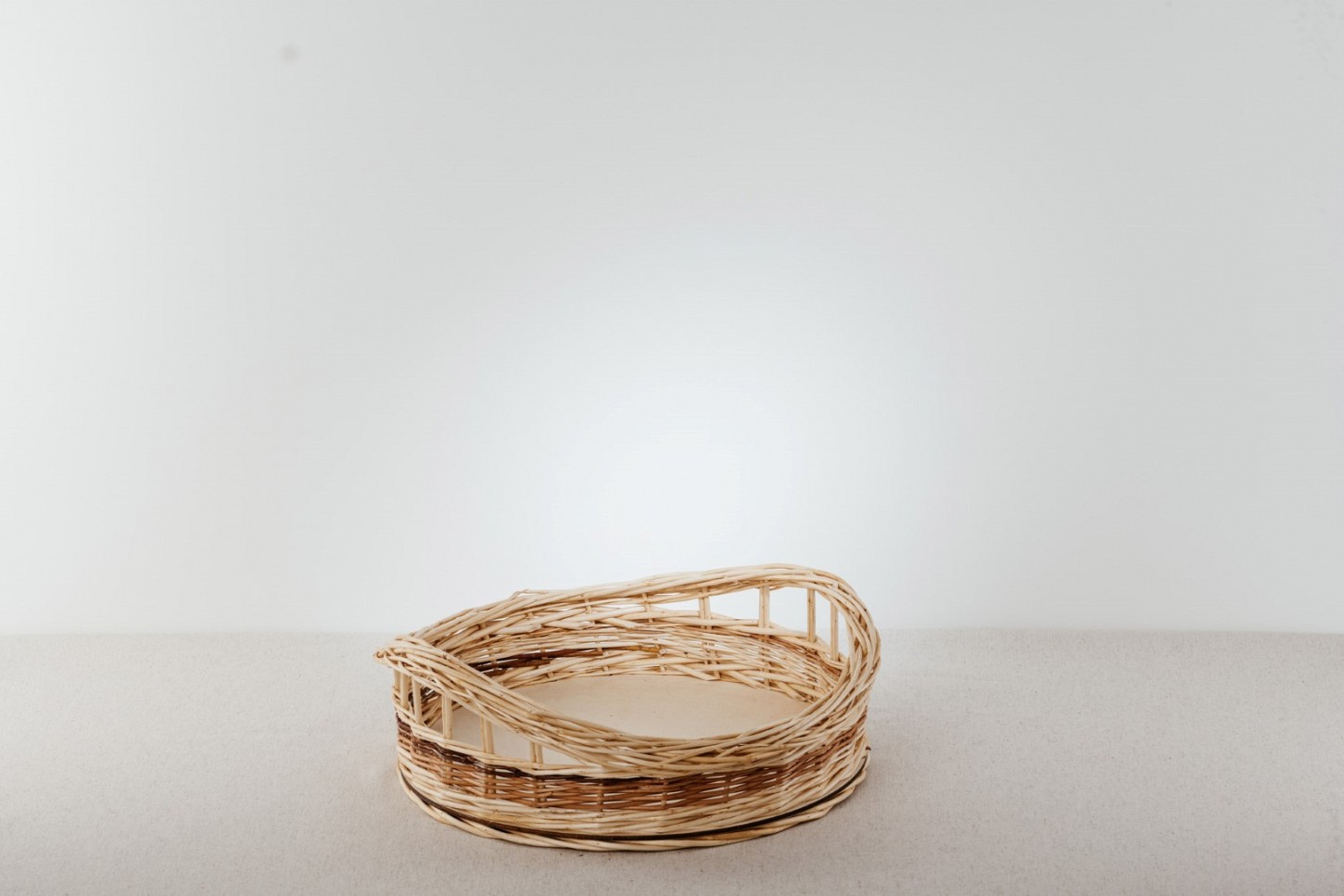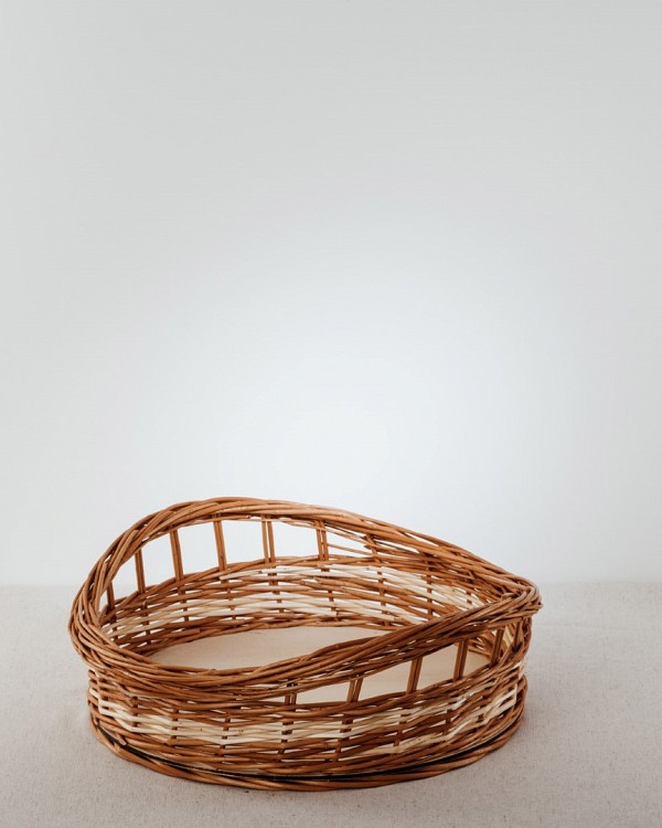 Na pladenj lahko postavite živila, pijačo ali pa ga uporabite kot okrasni predmet. Možnosti je veliko, izbira pa vaša. Pladenj z leseno povoskano podlago. Na tradicionalen način spleten iz različno pripravljenih vrbovih šib.