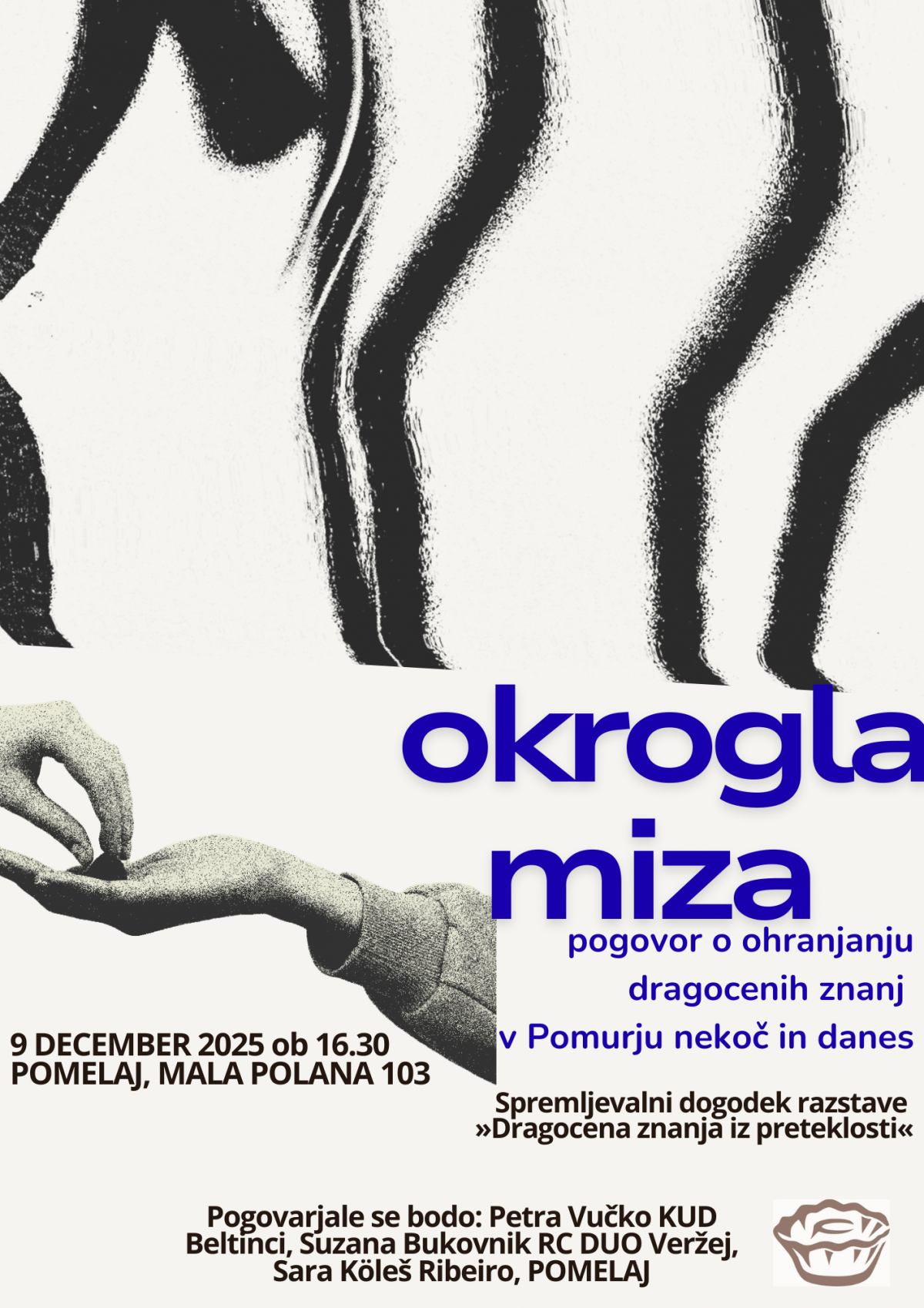 Pomelaj skupaj s partnerji Pomurskim muzejem Murska Sobota, Rokodelskim centrom DUO Veržej in KUD Beltinci pripravlja poseben decembrski dogodek, posvečen bogati rokodelski dediščini našega prostora in njenemu razvoju danes.
