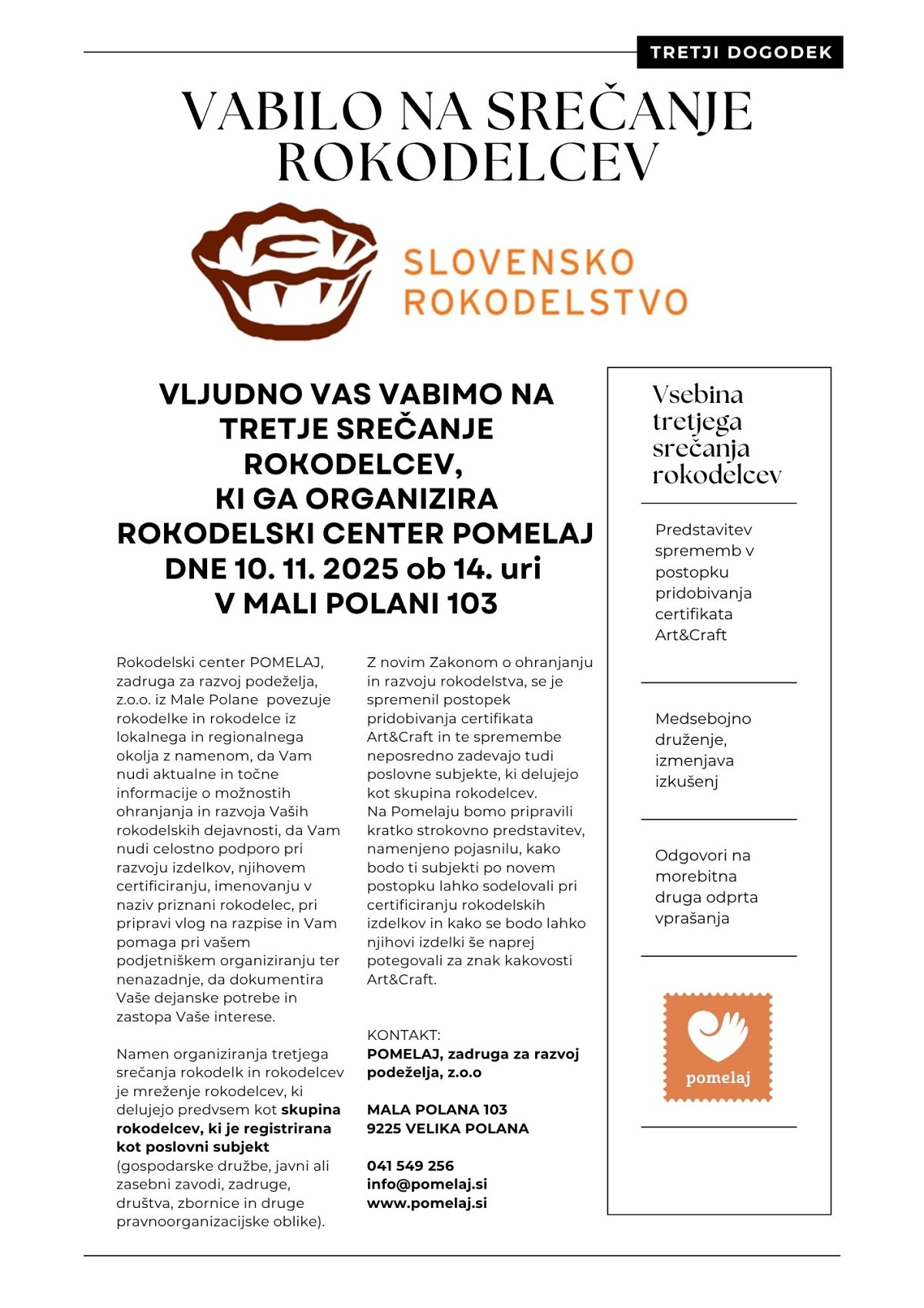 Vabilo na srečanje rokodelcev!