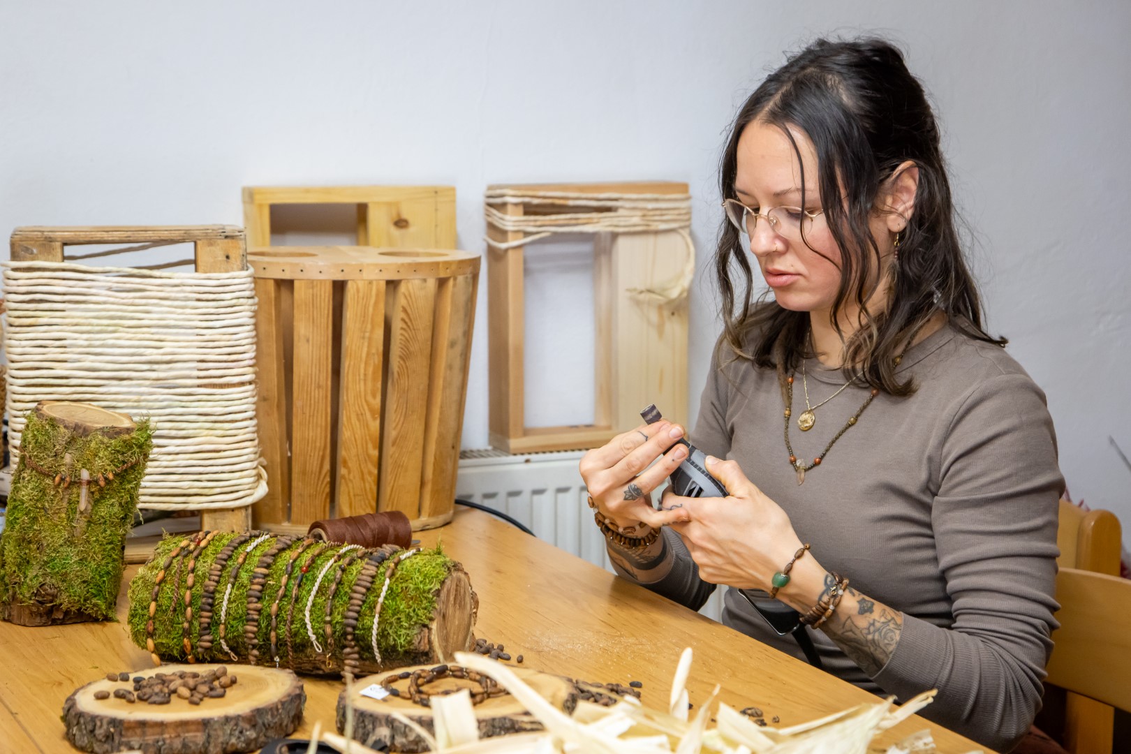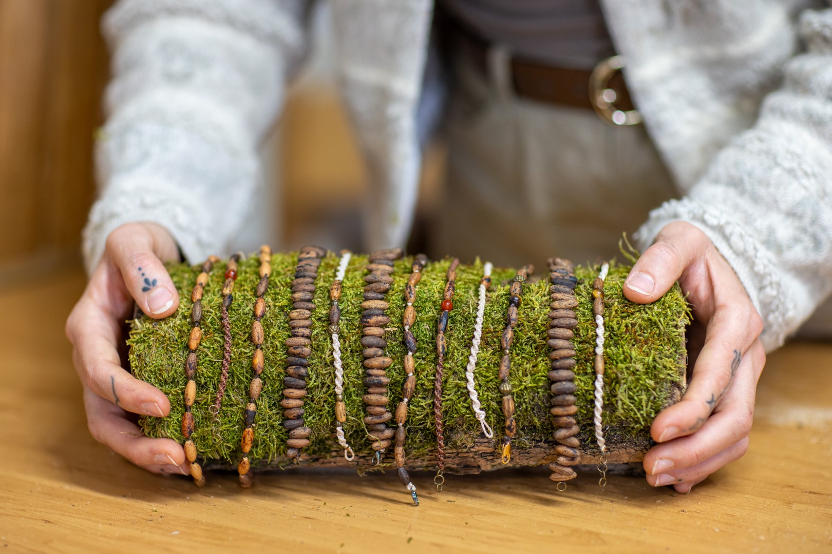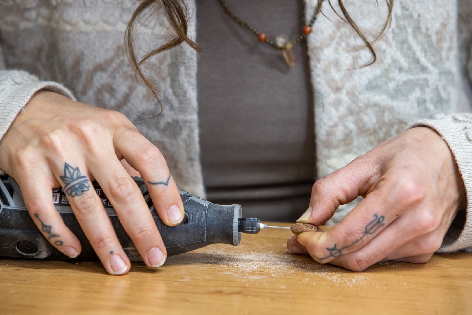 Posebno pozornost je pritegnila z oblikovanjem semen drena v visokokakovosten nakit – ogrlice in zapestnice –, za katerega je prejela tudi rokodelski certifikat Art&Craft Slovenija. Pri ustvarjanju uporablja različne postopke obdelave naravnih materialov, med katerimi izstopajo brušenje, fino brušenje, ročno dolbenje, izdolbenje, detajliranje mikropovršin, čiščenje, poliranje, pa tudi vpenjanje, pritrjevanje in natančno sestavljanje drobnih elementov v celoto. Ti postopki ji omogočajo, da iz naravnih semen oblikuje izčiščene, elegantne in funkcionalne izdelke.