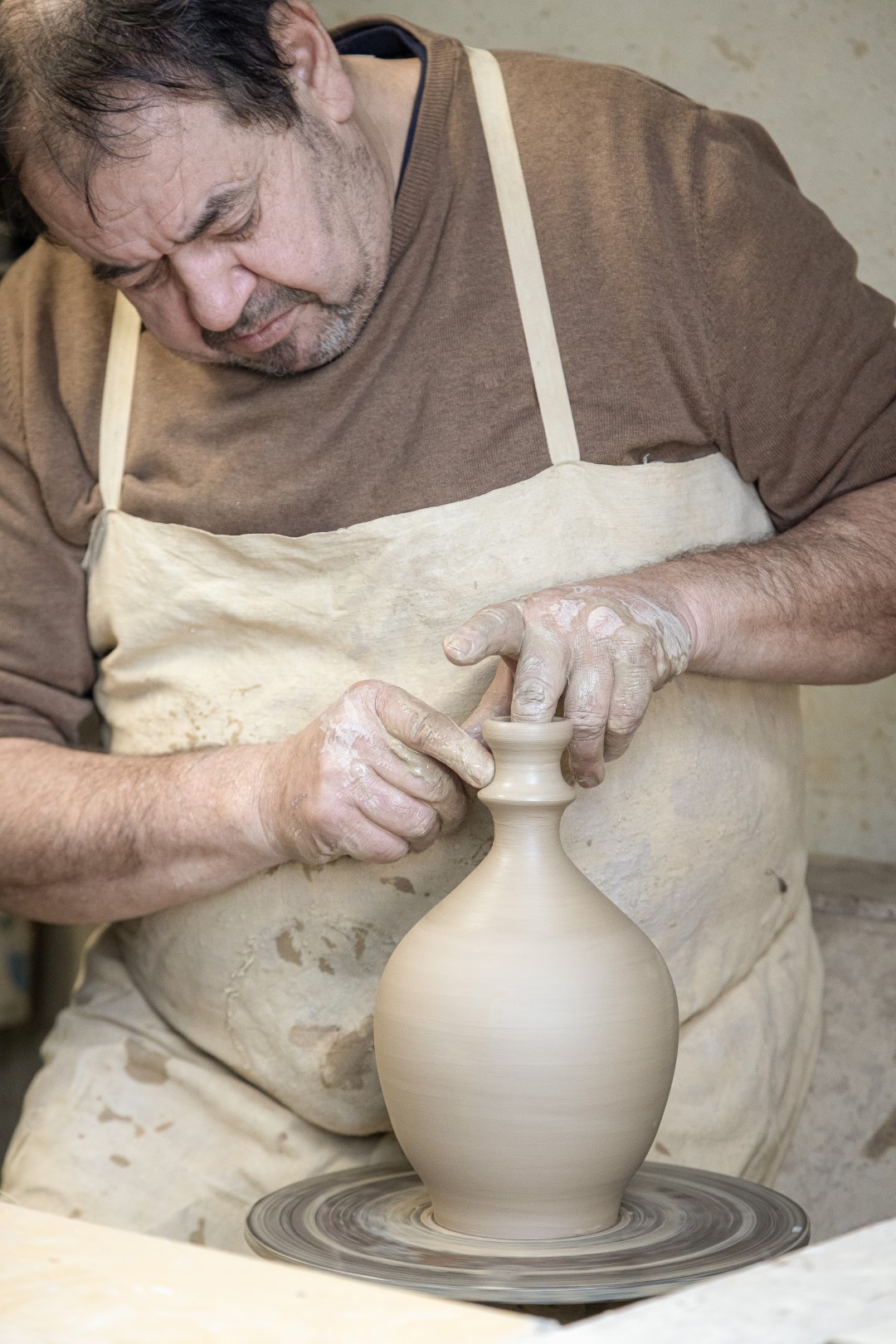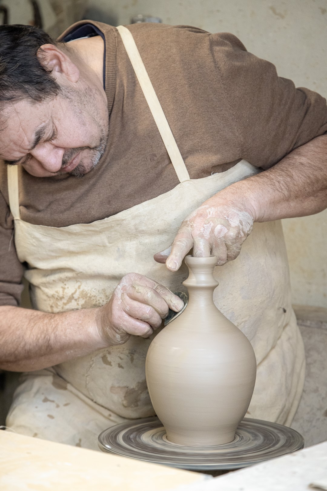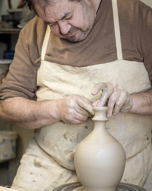 Prve izkušnje je pridobil v očetovi delavnici, kjer se je najprej seznanil s kopanjem in pripravo gline, nato pa ga je delo na vretenu hitro prevzelo. Po njegovih besedah lončarstvo zahteva veliko vaje in natančnosti, saj uspeh temelji na potrpežljivosti. Vztrajnost in samokritičnost sta, kot poudarja sam, ključni lastnosti, ki vodita do res kakovostnih lončarskih izdelkov.